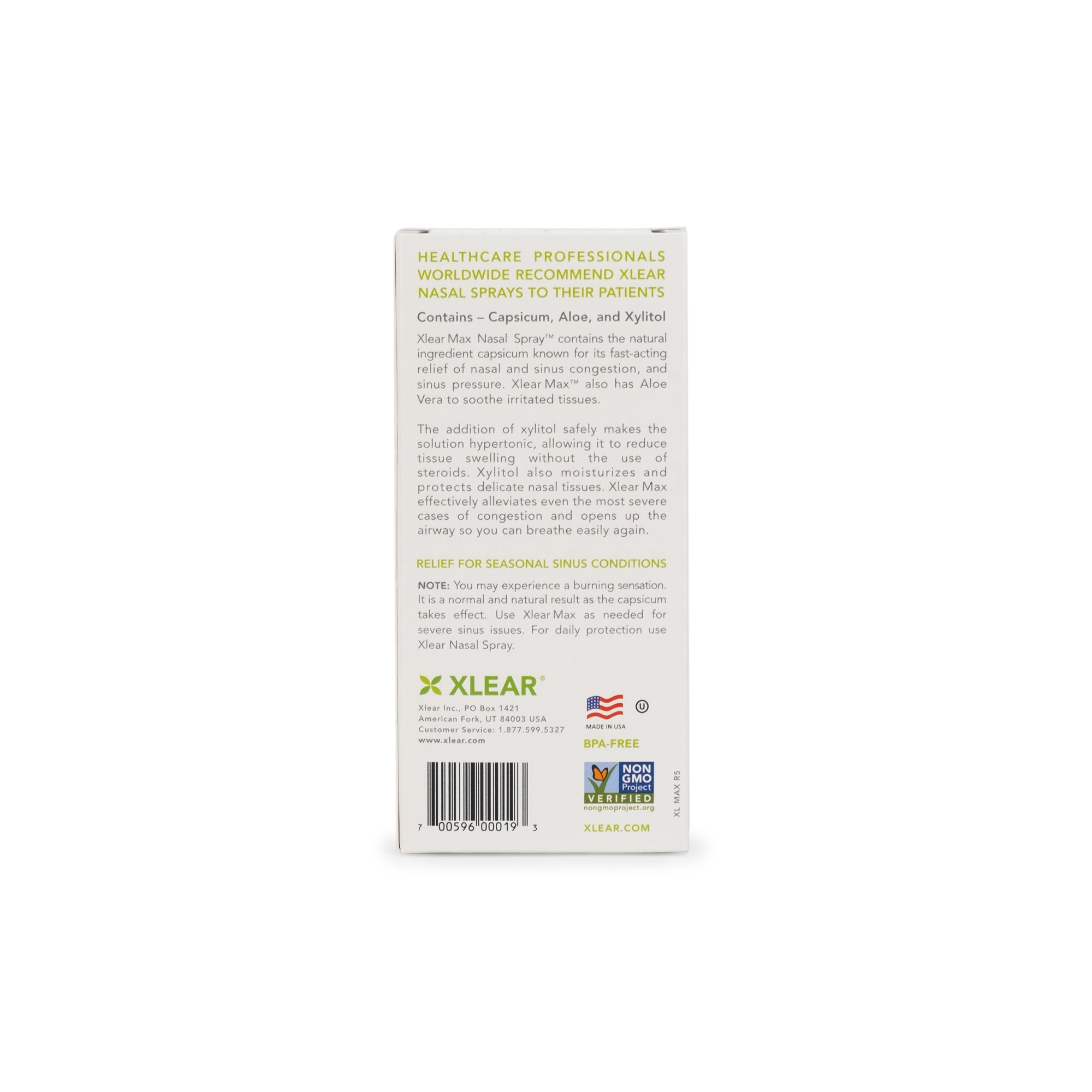 XLEAR MAX Nasal Spray has the added benefits of Capsicum Oleoresin and natural aloe. The addition of aloe vera and capsicum to our best-selling original XLEAR Nasal Spray formula gives more immediate relief from nasal congestion and allergy symptoms when you need it.